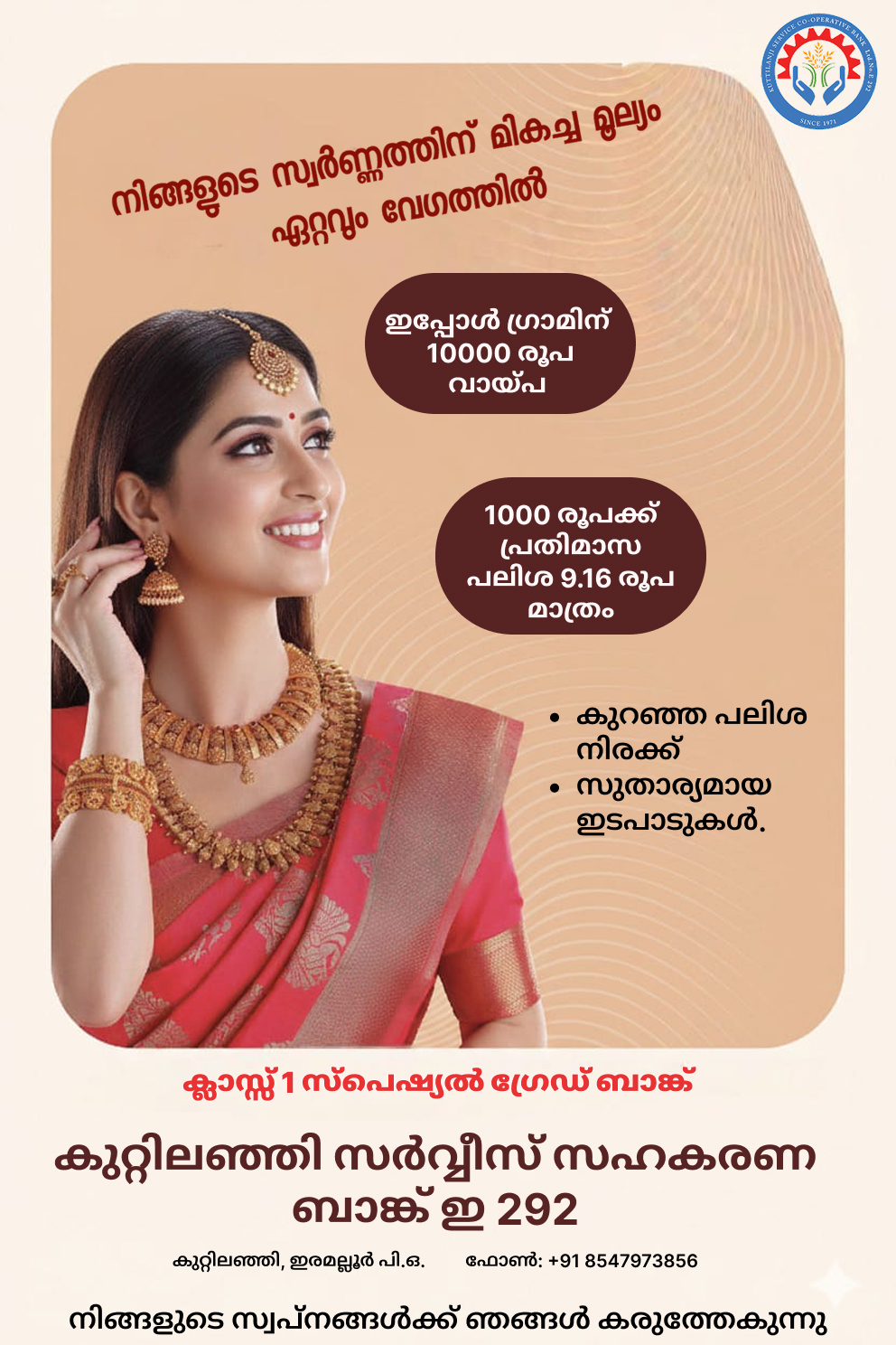 S.S.L.C, PLUS TWO à´•àµà´¯à´¾à´·àµ അവാർഡൠ2016 -2017 വർഷം സർകàµà´•ാർ à´Žà´¯àµà´¡à´¡àµ à´¸àµà´•ൂളàµà´•ളിൽ പഠിചàµà´šàµ എസൠഎസൠഎൽ സി à´ªàµà´²à´¸àµ ടൠപരീകàµà´·à´¯à´¿àµ½ à´Žà´²àµà´²à´¾ വിഷയങàµà´™àµ¾à´•àµà´•àµà´‚ à´Ž à´ªàµà´²à´¸àµ നേടി ഉനàµà´¨à´¤ വിജയം കൈവരിചàµà´š ബാങàµà´•ൠമെമàµà´ªàµ¼à´®à´¾à´°àµà´Ÿàµ† à´•àµà´Ÿàµà´Ÿà´¿à´•ൾകàµà´•ൠബാങàµà´•ിൻറെ à´†à´à´¿à´®àµà´–àµà´¯à´¤àµà´¤à´¿àµ½ à´•àµà´¯à´¾à´·àµ അവാർഡàµà´•ൾ വിതരണം ചെയàµà´¯àµà´¨àµà´¨àµ. അതിനായി à´¸àµà´µà´¯à´‚ സാകàµà´·àµà´¯à´ªàµà´ªàµ†à´Ÿàµà´¤àµà´¤à´¿à´¯ മാർകàµà´•ൠലിസàµâ€Œà´±àµà´±à´¿à´¨àµà´±àµ† കോപàµà´ªà´¿à´¯àµà´‚ à´°à´£àµà´Ÿàµ പാസàµà´ªàµ‹àµ¼à´Ÿàµ സൈസൠഫോടàµà´Ÿàµ‹à´¯àµà´‚ അപേകàµà´·à´¯àµà´‚ ബാങàµà´•ൠഓഫീസിൽ ജൂൺ 10 നൠമàµàµ»à´ªà´¾à´¯à´¿ à´àµ½à´ªàµà´ªà´¿à´•àµà´•àµà´•. Read More